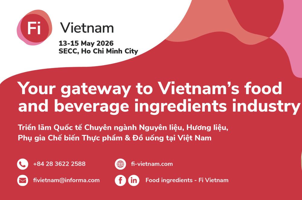Fi Vietnam 2026 – Triển lãm Quốc tế Chuyên ngành Nguyên liệu, Hương liệu, Phụ gia Chế biến Thực phẩm & Đồ uống tại Việt Nam, từ 13 đến 15 tháng 5, tại SECC, Tp. HCM.